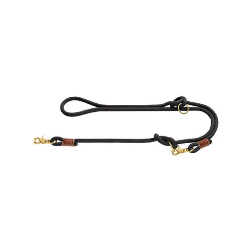 Mit der verstellbaren Führleine Oss der Marke Hunter können Sie und Ihr Hund sich sehen lassen. Diese hübsche Hundeleine aus Tauseil hat ein maritimes Design, das mit Elementen aus Leder und goldfarbenem Metall abgerundet wird. Die Länge lässt sich leicht über zwei Ringe an verschiebbaren Knoten individuell einstellen.