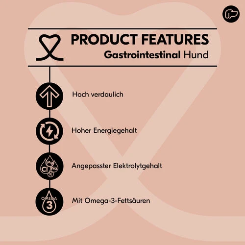 Bei gesundheitlichen Problemen kann die Ernährung eine wichtige Rolle spielen. Vetality Gastrointestinal wurde von Tierärzten speziell zur Unterstützung von Hunden mit Verdauungs- und/oder Magen-Darm-Störungen entwickelt. Dieses Futter auf der Basis von Reis und Geflügel ist leicht verdaulich. Es trägt zu einer gesunden Darmflora bei und unterstützt die Verdauung. Vetality Gastrointestinal enthält auch mehr Natrium und Kalium, um den Verlust dieser Nährstoffe aufgrund von dünnem Stuhl auszugleichen. Das Futtermittel enthält Omega-3-Fettsäuren, die zum Schutz und zur Erhaltung gesunder Zellen und Gewebe beitragen.